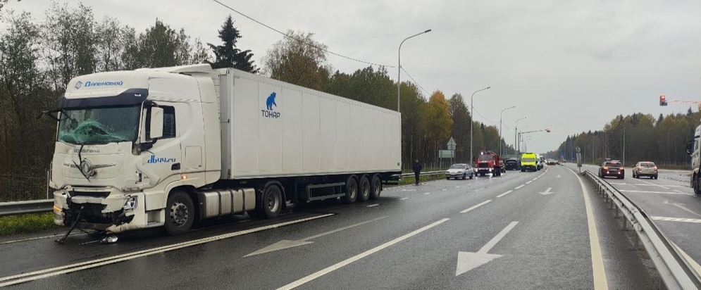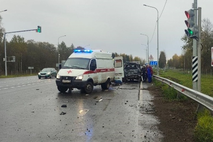 Авария случилась сегодня в 12:49 на 107-м километре федеральной автодороги А-114. По предварительным данным, водитель 1972 года рождения, управляя грузовым автомобилем «Донгфенг» с полуприцепом «Тонар», двигался по правой полосе в направлении Вологды со стороны Санкт-Петербурга. Он совершил столкновение с автомобилем «Фольксваген Мультивен», под управлением водителя 1976 года рождения, который стоял на светофоре в попутном направлении.