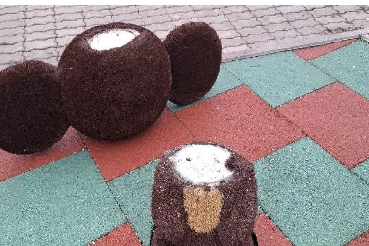 В сквере Героев СВО установлены персонажи советского мультфильма Крокодил Гена и его друг Чебурашка. Вандалы оторвали голову Чебурашке и бросили ее рядом.