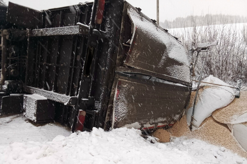 В Сокольском округе вчерашним утром ДТП произошло на 54 км автодороги Чекшино – Тотьма. Мужчина 54 лет двигался на грузовом автомобиле МАЗ с прицепом. Из-за неблагоприятных условий водитель не справился с управлением. Фура опрокинулась на бок на обочине трассы. Шофер получил травмы, но от госпитализации отказался.