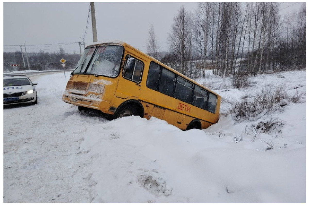 Под Череповцом школьный автобус уехал в кювет, оставшись без водителя