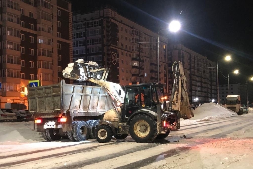 Уборка города осуществляется в усиленном формате. У рабочих продлен рабочий день. За эту неделю из города уже вывезли более 30 тысяч кубометров снега.