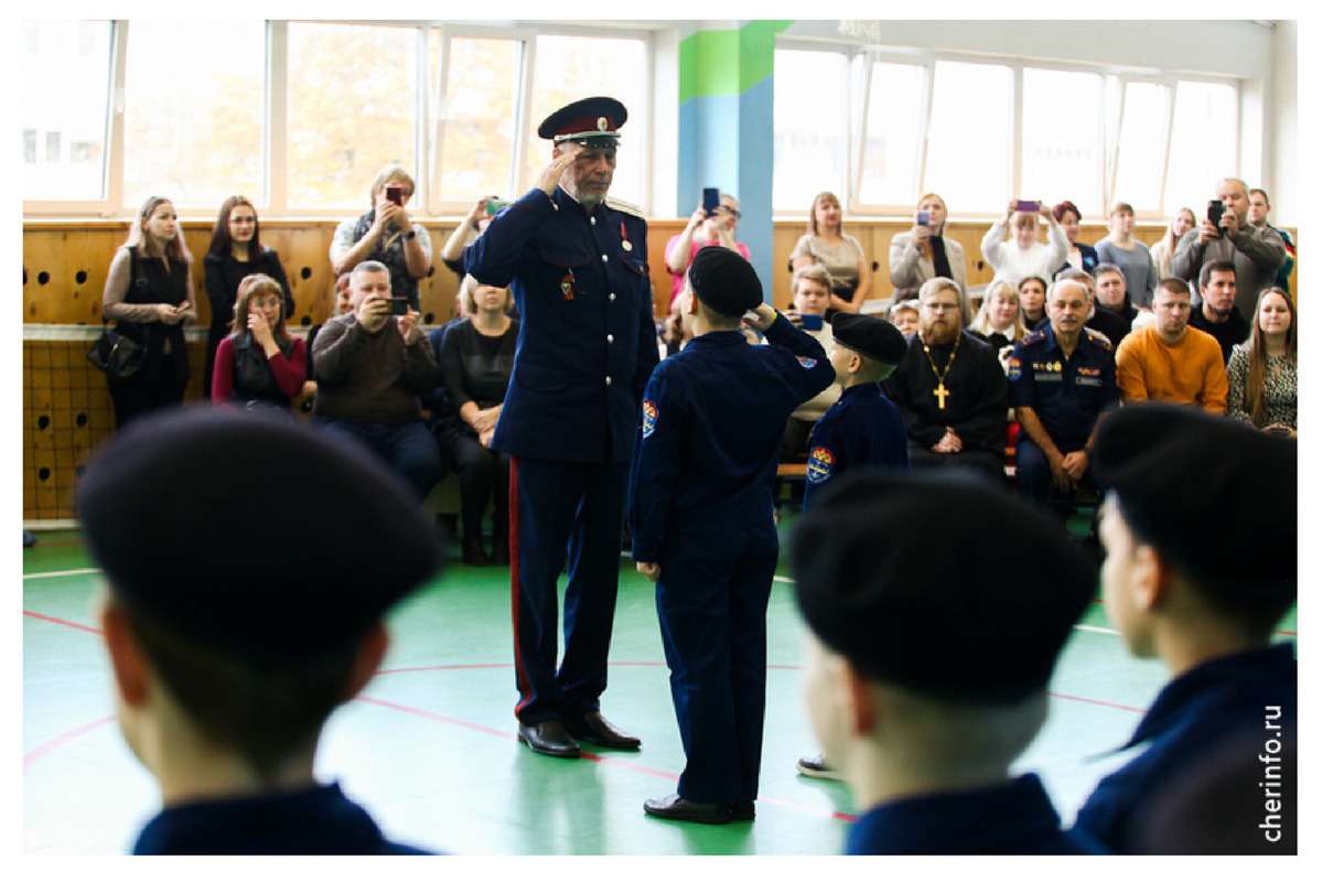 Накануне первоклассников и пятиклассников посвятили в кадеты-казаки. Ребята дали клятву. Им вручили погоны. Гостем церемонии стал атаман городского казачьего общества «Северная казачья сотня» Владимир Воробьев.