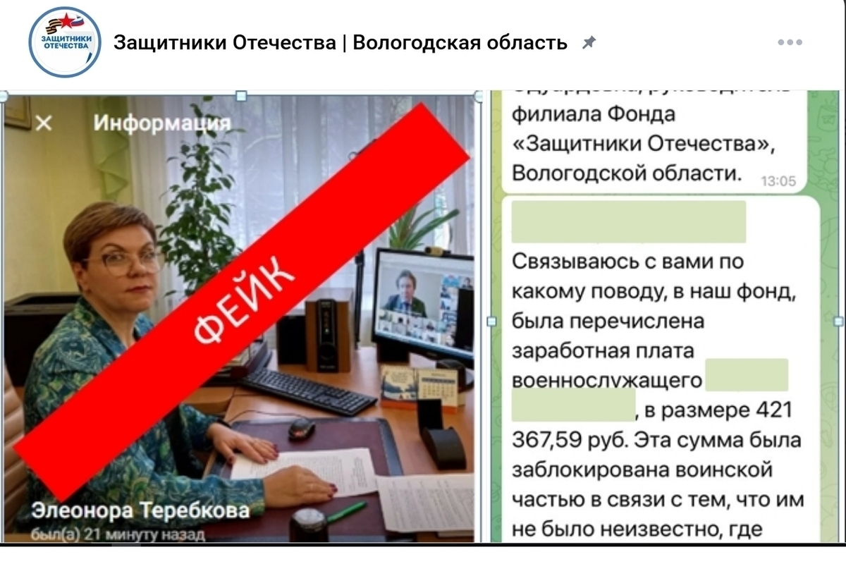 Вологжан просят быть внимательней к поступающей информации. Руководитель филиала никому не пишет лично в мессенджерах и в социальных сетях. Фонд не занимается начислением или получением заработных плат военнослужащих. Все выплаты и пособия для участников СВО происходят только через официальные государственные структуры.
