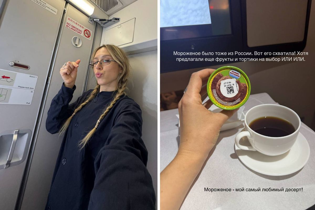Блогерша путешествовала бизнес-классом китайской авиакомпании. Среди угощений было вологодское мороженое, которому девушка уделила особое внимание. Гастрономическими впечатлениями она поделилась со своими подписчиками.