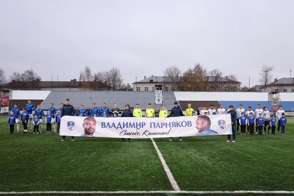 Кроме того, «Динамо-Вологда» в рамках этой игры торжественно попрощалась со своим капитаном Владимиром Парняковым. Спортсмен завершил свою профессиональную карьеру. На поле вынесли баннер с его портретом. Мама и супруга полузащитника сделали символические удары по мячу.