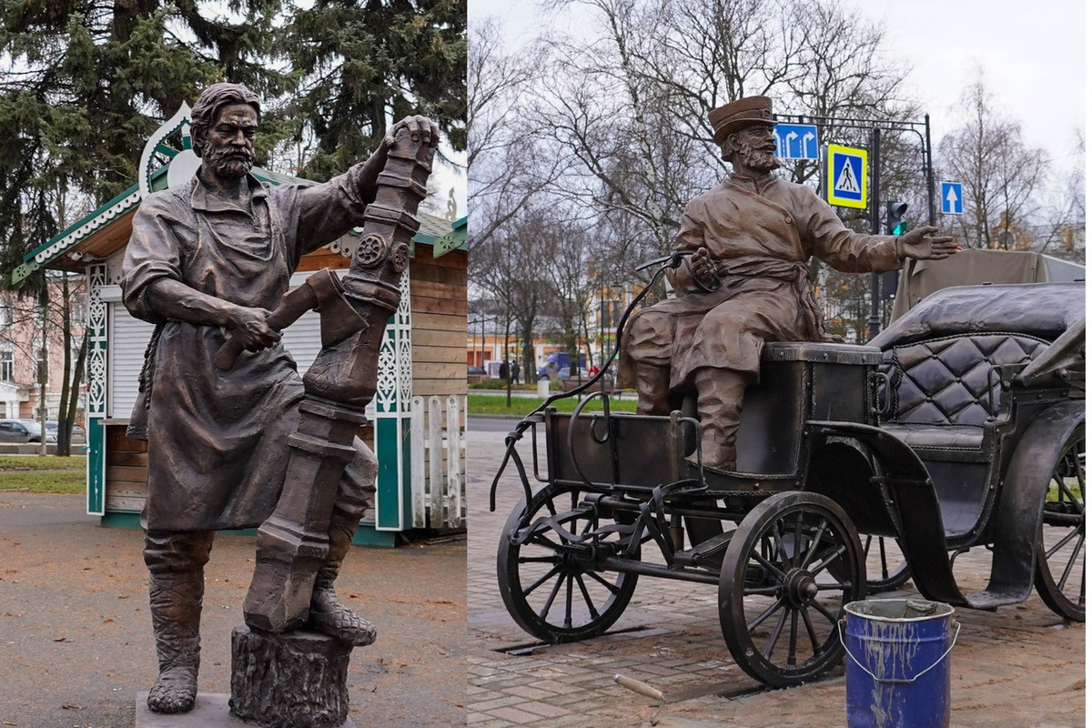 Две бронзовые скульптуры «Зодчего» и «Ямщика» стоят на Торговой площади. Одну можно найти недалеко от остановки, вторую – рядом с деревянными домиками. Фигуры призваны подчеркнуть историческое прошлое Вологды. Областная столица всегда была крупным центром культуры и важным перевалочным пунктом.