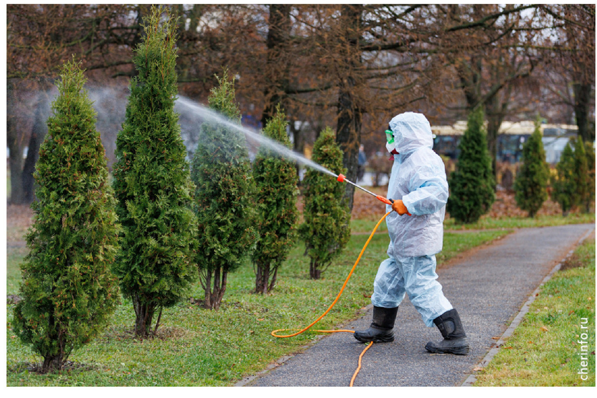 Ели и туи в Череповце опрыскивают специальным защитным составом