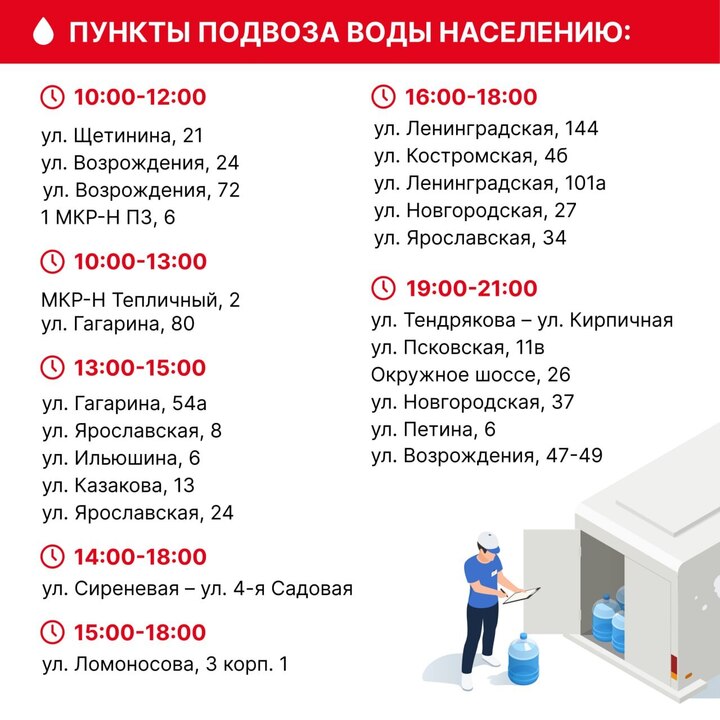 Подвоз воды организуют по 20 адресам. Цистерны станут дежурить 15 и 16 ноября. Процесс находится на контроле городской администрации.