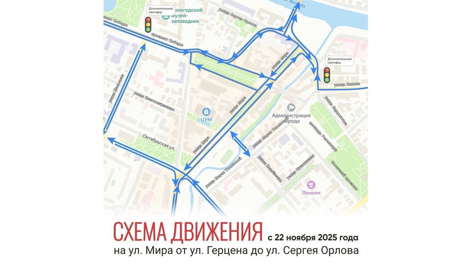 Завтра временно откроют для движения транспорта улицу Мира в Вологде